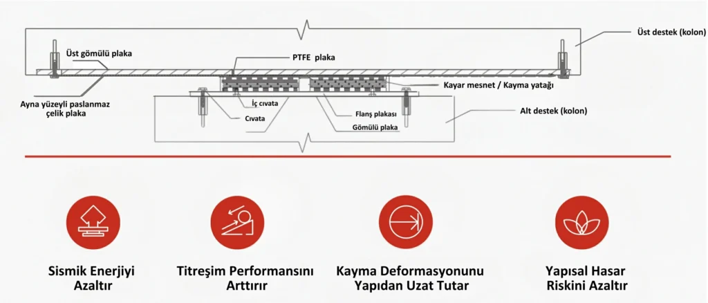 Yalnız başına yeterli yeniden merkezleme (recentering) sağlamadığı durumlarda ise, LRB veya HDR gibi farklı sismik izolatör türleriyle birlikte hibrit sistemler içerisinde kullanılarak bu ihtiyaç etkili bir şekilde karşılanabilir.